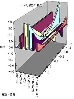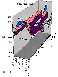図.3:x^2を微分(3階まで)したものと、2階まで積分したもの