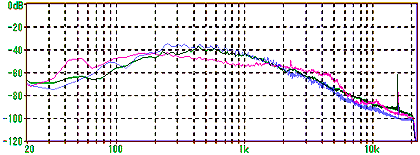 この三つの環境音の間の違いが判り易いように、この三つを重ねて表示してみる。表示色は