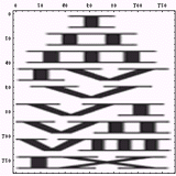 この二つの画像を読む方向に目を走らせると、まるでバーコードのようである。以前、