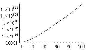 子供の家N=100までの場合の、サンタが計算しなければならない経路の総数(N-1)!/2を以下に示してみる。