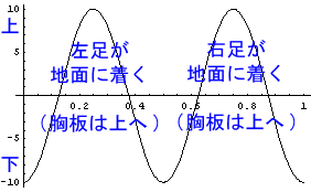 まず第一に、人間の足、胴体にはクッションのような働きがあり、この形状のように鋭い変化はしない、としたいのである。実際、街中を歩く人々を観察した結果でも先に示したような「人の胸板の上下の動き」であった。