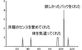 達の間で繰りひろげられる色々な「出来事・きっかけ」と、それにより発生する「恋する心」を「恋のインパルス応答」を用いて計算してみた。その結果、C男とB子がカップルになれば「ほのぼの」とした幸せな生活をしそうだ、というところまで考察した。