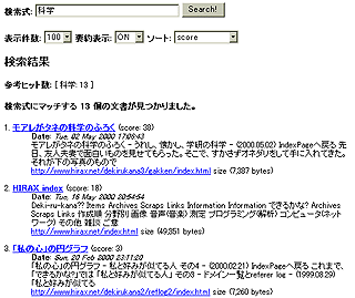 使い方の詳細は"namazu"の検索式の詳細(http://www.namazu.org/doc/manual.html#query)を見て頂くことにして、まずは使ってみたい。「できるかな?」は科学サイトだと思われることも多い。いや、自分でもたまにそう思うこともあるのだが、全文検索をかけてみると少し違う結果が出た。