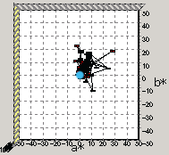 それが端的にわかるのがa*b*平面で表示させてみた場合である。a*方向すなわち赤色方向は多いのに対して、b*の小さい方向つまり緑方向などには妙に点がないことがわかるだろう。今のユニクロは緑を何故か避けているのである。緑の純色のフリースは人気がないのだろうか?う〜ん、不思議なところだ…