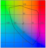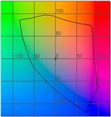 で塗りつぶしてみたのが下の図である。この図では比較のためにsRGBの色空間も表示してみた。