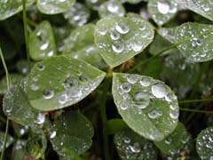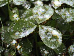 RINgの出力サンプルを少し眺めてみると、下の画像のようになる。まず最初のサンプル画像は、クローバーの写真に「虹十字状」の畳み込みの演算カーネルを用いて、処理をしてみたものだ。左のオリジナル画像では、朝露を載せて光るクローバーを眺めるときに私達が感じる「キラキラしたようす」がほとんど写っていないが、右のフィルター後の写真では私達が睫毛などを通して景色を見るときに感じる虹色のキラキラした自然?な景色が映し出されている。