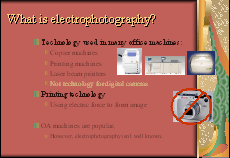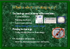 ところが、発表資料の背景にカラフルなものを使ってしまうと、例えば上のようなPowerPointの発表資料を使ってしまうと大変なことになる。配布用の資料を印刷している最中に、「○×色のインクがもうほとんどありません」とか「○×色のトナーを補充して下さい」といったメッセージをプリンターが表示するようになるのだ。つまり、あっという間にインクやトナーが無くなってしまうのである。単にそんなメッセージを表示するだけならばいいのだけれど、もちろんインクやトナーの補充をしてやらなければならない。しかも、そんな消耗品はとても高いのである。本体が15万円位で、消耗品も15万円位なんていうものだってあるくらいなので、つまりはお金に翼が生えて飛んでいってしまうのである。