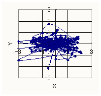このグラフを見ると、おぼろげながらそれぞれのビデオの特徴が見えてくる。例えば、ジャンル「ハード」のビデオではなんだか青い線の方が大きい動きを示している、つまり、横方向の動きが縦の動きに比べるとずいぶんと大きそうだ、なんていうことがわかる。もちろん、それはあくまで平均的な速度の話である。だから、その「動き」というものが、男優の動きなのがあるいは女優の動きなのか、あるいは、他の何かなのかは判らない。しかし、とにかくジャンル「ハード」なビデオ「○@△!@の$%*!」では横方向の振動が大きそうだなんていうことが判る。
