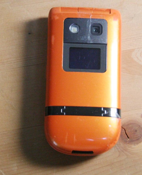 そこで、ケータイに付いているカメラのレンズ前に「赤外線を通し、可視光をカットするフィルタ」を付ければ、赤外線で見る世界をケータイのカメラを通して眺めることができる「赤外線カメラ付きケータイ」に変身するわけです。というわけで、右の2枚の写真が、「改造前の”ノーマル”ケータイ」と、レンズ前に820nm以下の光を通さないフィルタを(入手方法)セロハンテープで貼り付けることで「赤外線カメラ」に改造したケータイになります。ケータイですから、もちろん、持ち歩くのもとても簡単です。しかも、片開きドアのように「可視光カットフィルタ」を取り付けておけば、普通の可視光写真を撮るモードと赤外線写真を撮るモードを切り替えるのも簡単です。