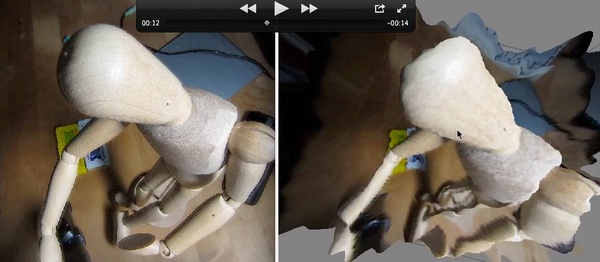 (一万円ちょっとで買った)コンパクト・デジカメを簡易三次元(形状)計測機にしてみました。ピント位置を(輪切り状に)刻々変化させつつ被写体を自動撮影させて、それら(ピント位置が異なる)17枚ほどの画像群から、3次元形状を再構成してみたのです。再構成した3次元形状をグリグリ回してみたのが下の動画(の右の部分)です。参考までに、撮影した17枚の画像をパラパラと眺めてみたようすも、立体グリグリ動画の下に貼り付けておきます。