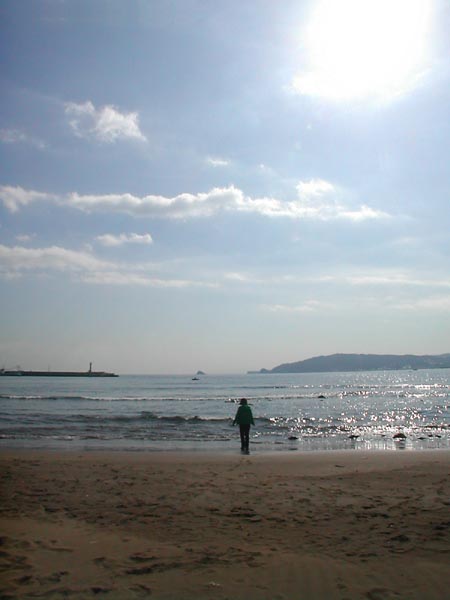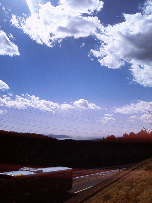 バスが走る道の向こうに海が見える。海の向こうは大瀬崎。その向こうは青い空。歩きながら下を向いて足下の水たまりを眺めていると、その向こうにもやっぱり同じ青い空が見える。