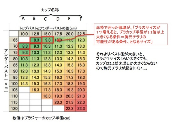 アンダー65cmのCカップというのは、かなりレアなパターンでしょうから、実際のところ「胸先がチラリ見えてしまいやすいのは、A,Bカップにほぼ限られる」と言っても良いだろう、ということになります。