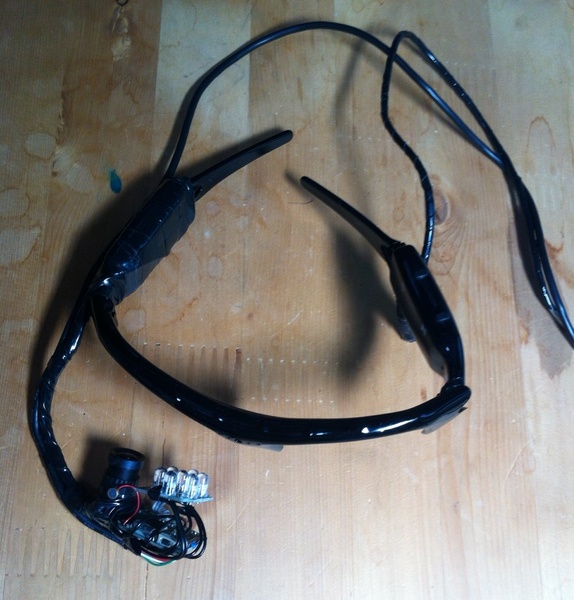 今日作ったのは、「マイ・メガネ」の「視線入力部」です。自分が眺める風景を認識しつつ、その風景の中のどんな場所を眺めるかを検出することもできる、「視線入力装置付きメガネ(眺めている世界をリアルタイム・キャプチャ&録画する装置付き)」です。「自分が眺める風景を認識しつつ」とか「(逐次)眺めてる世界」といったことをわざわざ書いているのは、実に単純な理由です。つまり、(視線計測時には)頭を動かしちゃだめですよ・眺める景色に対して顔を動かしてはいけませんよ、という計測装置が多いからです。…そんな制約条件は不自然だ・あり得ない…と思うわけです。