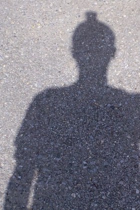 というわけで、手足が生えた歩く”白い”マスクメロンとなっている。道路に横たわる影だけを見るならば、まるでモヒカン男かチョンマゲ侍が歩いているようだ。実に情けない格好だ。