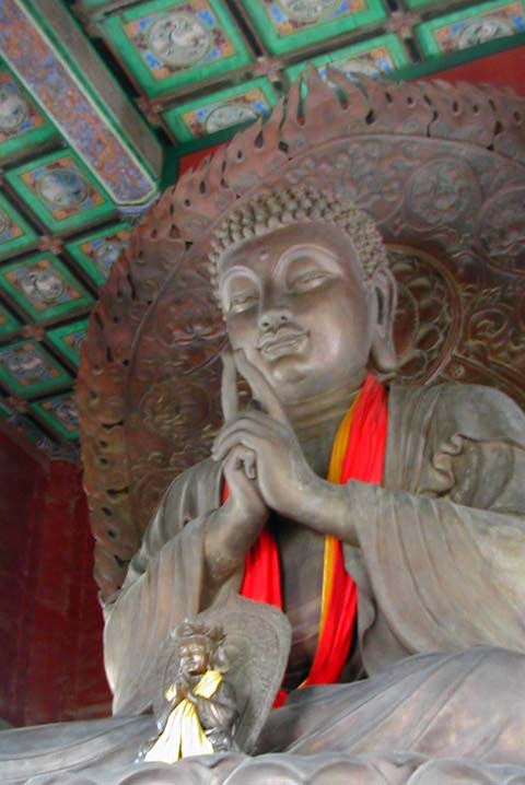 大きな仏像の膝に、小さな仏像がのっている。チッコイ仏像はちょっとエラそう。(リンク
