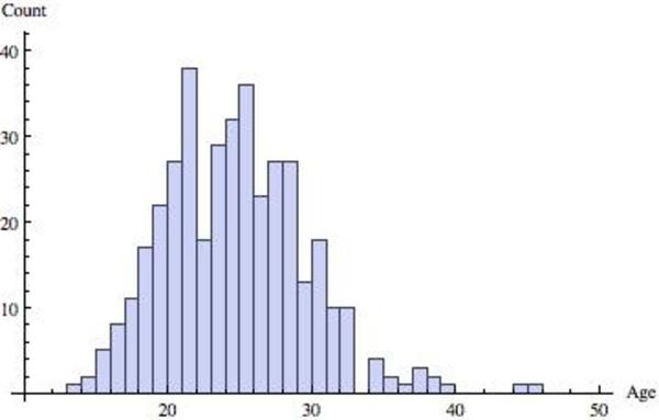 「身長とスリーサイズでアイドルをクラスタリングしてみよう!?」「カップサイズはバスト・ウェストに比例して、ヒップサイズとは無関係」で使った395人のアイドルの各種データ、年齢や身長やスリーサイズやカップサイズ…といった各種データのヒストグラムを描いてみました。