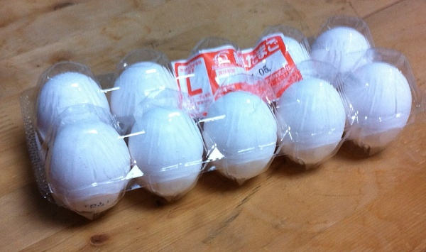 卵(ニワトリの卵=鶏卵)は「パック」で買うのが普通です。12個入りパックや10個入りパック、あるいは、6個入りパックをスーパーなどで買ってくることが多いのではないでしょうか?