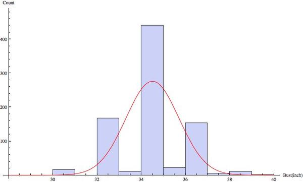 …しかし、そんなことより何より、「何じゃぁ?こりゃぁ!??」と感じるのが(一番右の)バスト・サイズ分布です。とても奇妙なことに、ほぼ全員のバスト・サイズが「偶数インチ」なのです。2インチということは、海外セレブのバストサイズは(ほぼ全員が)5cm刻み…という実に不思議な分布になっています。