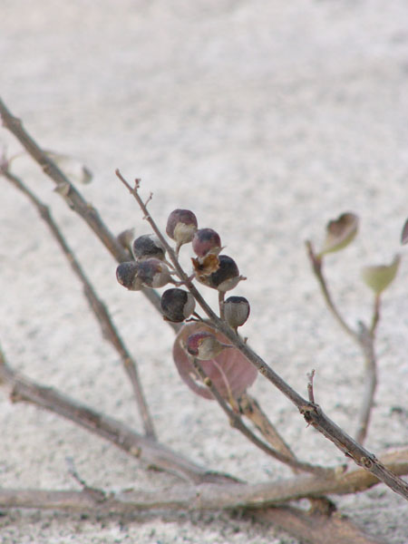 沼津の千本浜を歩いた。千本浜から沼津港に向かって歩いた。少しだけ細い堤防の脇に、赤い木の実がはじけてた。そして、沼津港に近い方ではそんな木の実がまるでドライフラワーみたいに白くなっている。なんで白いのかは良く判らないけれど、小さいけれど少し不思議な景色だ。こんな不思議な景色をそういえば見たことがある。あれは確か阿蘇山に噴火の後に行った時の景色に少し似てる。