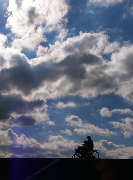 そして、この「広角に弱い」デジカメでさえ空がこんなに広く見える。当たり前だけど、空が青くて雲が白くて、影が暗くて光がまぶしい。何故だろう?