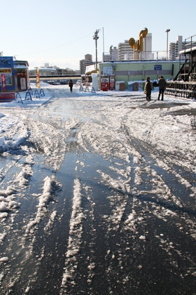 というわけで、右上に貼り付けてみた「今日見た瞬間」私が眺めた「動いている一瞬の景色」は、東京北千住で眺めた「雪どけの水滴」です。BGMは1950年にヒットしたSammy Kayeの"Harbor Lights"です。(ちなみに、iPod用のビデオ動画だとこんな感じです)