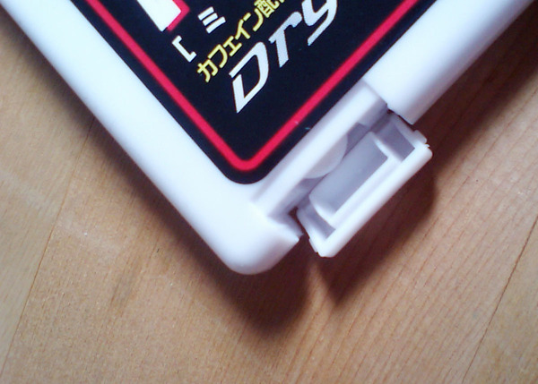 このミンティアのケースには、実は、結構面白い秘密が隠されている。タブレットを出す部分・蓋内部の経常を眺めてみれば、少し不思議な形状であることに気づくはずだ。特に説明文などがケースに書かれているわけではないけれど、この蓋形状は、タブレットを「一回に一粒だけ取り出す」ためのものである。タブレット菓子をケースから出そうとすると、一度に何粒も出てしまい困ることがある。しかし、ミンティアの場合、そういったことは起きない。