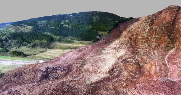 ■国土地理院ドローンヘリ映像から、阿蘇大橋近くの3次元地形図を生成してみる…。