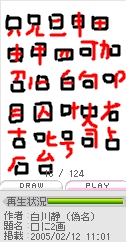 第三回に引き続き、第四回のらくがきボード展覧会です。みきゃこ★さんの見事ならくがきとか、ガリレオガリレイのアニメーション(これは再生して眺めてみましょう)とか、白川静(偽名)さんの漢字シリーズとか色々です。