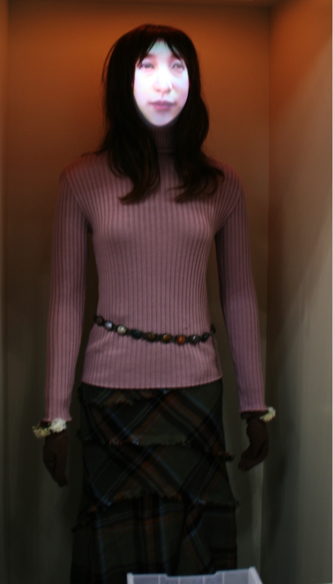 表情豊かに喋る顔の様子を立体表示してくれる、というロボットです。表情が豊かで自然なので、人に与える印象が優しい、というわけです。…しかし、結果として、このロボットを見た人が受ける印象は恐怖以外の何者でもありません。「リングの貞子」もビックリのまるでホラー映画です。というわけで、見かけた場所は東京ビッグサイトで開催中の産業用VR展示会で。