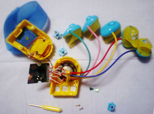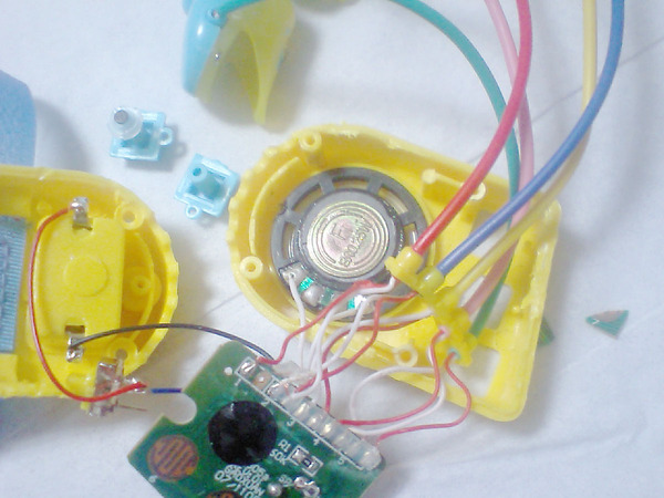 「メリーさんの羊」が演奏された後、さっそく「ゆびピアノ ドレミくん」を分解してみた。すると、これが実に面白い。