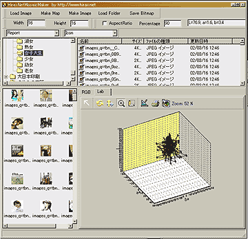そこでまずは、HiraxNetMosaicMakerに多数の画像の「色の平均値」を出力するウィンドーを付けたてみた。