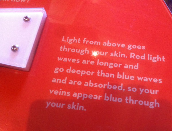 ■フランクリン科学博物館にある「腕の静脈が青く見える理由の説明展示」