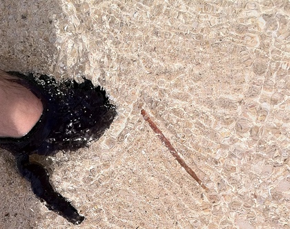 冒頭の写真は、沖縄の古宇利島の浜辺で撮影された誰かの足あとです。この古宇利島という名前は「越え(クイ)」を意味する「越島」に由来するともいわれ、また、その発音から「恋(クイ)島」とも呼ばれています。そして、この浜辺で「人」が生み出されたという伝説も残る…そんな場所です。