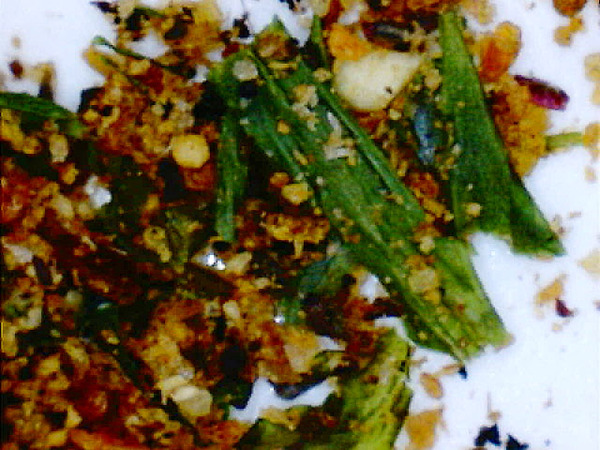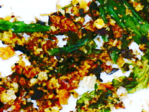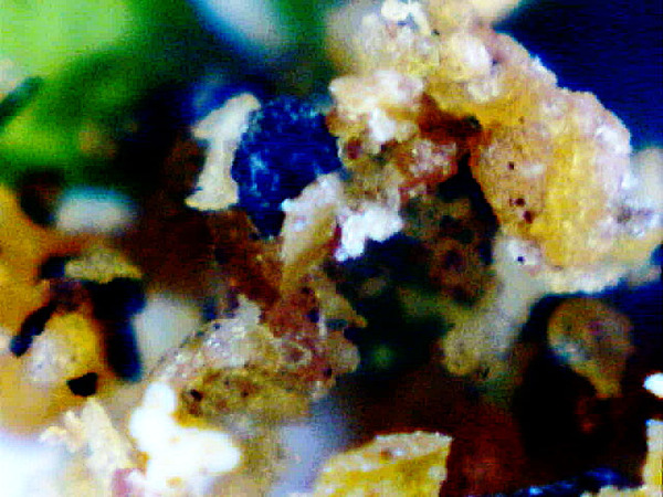 それはさておき、七味唐辛子をきちんと眺めたことはないような気がする…と思い、七味唐辛子を拡大して眺めてみた。拡大写真を撮ってみると、麻の実の周りに、細かく砕かれた赤唐辛子や黒ゴマがたくさん付いている。素人目にも、「七味」の分散状態は実に均等であるように見える。