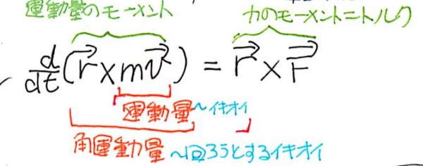 まず、回転の運動方程式を思い浮かべれば(右図)、逆上がりを成功させるためには、まずはシンプルに地面を蹴る瞬間に回転のイキオイを最大化したくなります。