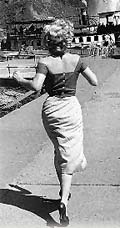というわけで、今回は何はともあれモンロー・ウォークを調べてみることにした。まずは、下の写真が「有名なお尻フリフリのモンローウォーク」の後姿である。