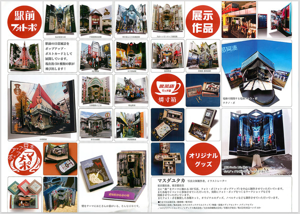 クリエイターEXPO 2016 でマスダユタカさんのフォト・ポ(フォトポップアップ)を眺めた。15年くらい前、重ね合わせることでパノラマ世界を作り出すかのような路上写真、(マスダユタカさんらの) 非ユークリッド写真連盟による「フォトモ」がとても面白かったことを思い出しながら、ミニチュアな実写風景を平らな紙で作り出し・その立体風景を手で動かせることが心地良く感じた。