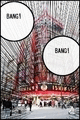 ワイドレンズ・カラー木版画・集中線・吹き出しの組み合わせ例