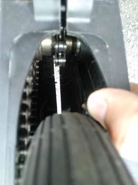 それに加えて、パッチモンのシートシャフトと全部を繋ぐプラ部品には、内部にリブが形成され剛性を確保しているのに対し、純正品にはそのようなリブはなかった。つまり、単なるU字断面構造の強化プラスチックである。そこで、ためしにその部分を握ってみると、純正品ではグニッと変形するするのに対し、パッチモンの方は変形しない。材料自体の硬さは違うのかもしれないけれども、作りが違うせいか、力をかけたときの変形具合が違う。もちろん、変形が大きいのは純正品の方である。材料は重要でしょうが、せめてプラ部品には適切なリブを付けて剛性をアップさせるべきだよなぁ…と、純正品とパッチモノを実際に比べ見ながら、その時何人かで言いあったのでした。