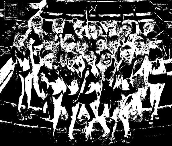 下に並べた2枚の画像は、左が元画像で、右が肌領域を検出した結果です。背景の階段影部分を「肌領域」として抽出する「検出ミス」も生じていますが、簡単な処理の割には、比較的良い結果が得られています。