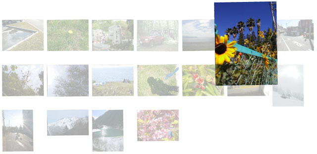 というわけで、作ってみましたjphoto。フォルダー内に入っている画像達から、自動的にzphotoモドキのフラッシュ写真集をWindowsで作ることができます。もちろん、本家zphotoに比べると実に小さなことしかできませんが、とにかくWindowsで動くのです。まずはサンプルの出力結果がこんな感じになります。緑の高原で風に吹かれているような、自然の気持ちよさをちょっと狙ってみました。