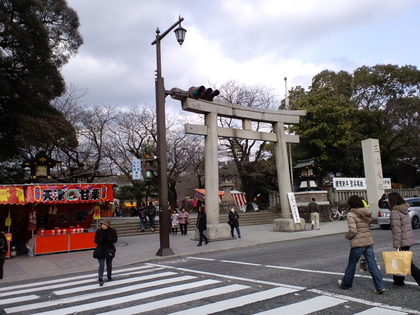 さて、下に張り付けた画像が明治末期の三島大社前です。三島大社の大鳥居前を走るのが東海道です。右の方の先には、お江戸日本橋があって、左の方へ歩いて行くと伊勢神宮や京都があります。この写真なら、同じ場所にタイムトリップしやすそう、というわけでこの場所へ行って写真を撮ってみることにしました。